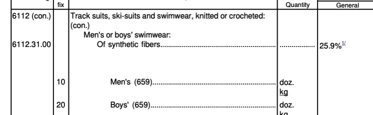 Just saw your post edit. Putting drysuit undies as swimwear? 6112.31. 0010 Wrong!