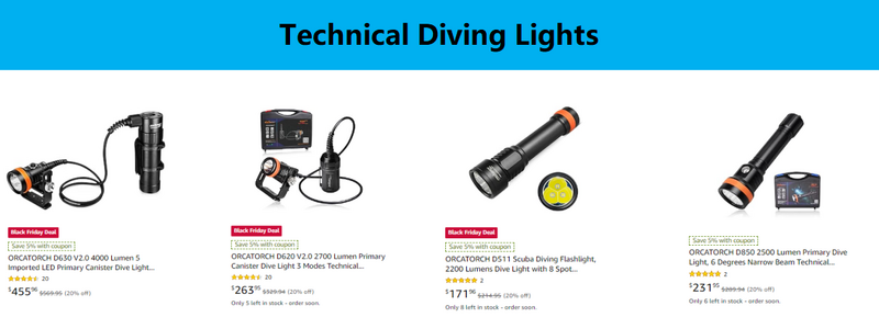 Our Black Friday / Cyber Monday sale is live. 20% OFF all orcaTorch Dive Lights. Just add the items on your wishlist to the cart and the discount is automatically applied. See something you want that is not on sale reach out to our Amazon seller " Outdoor Equipment Expert" for assistance!
