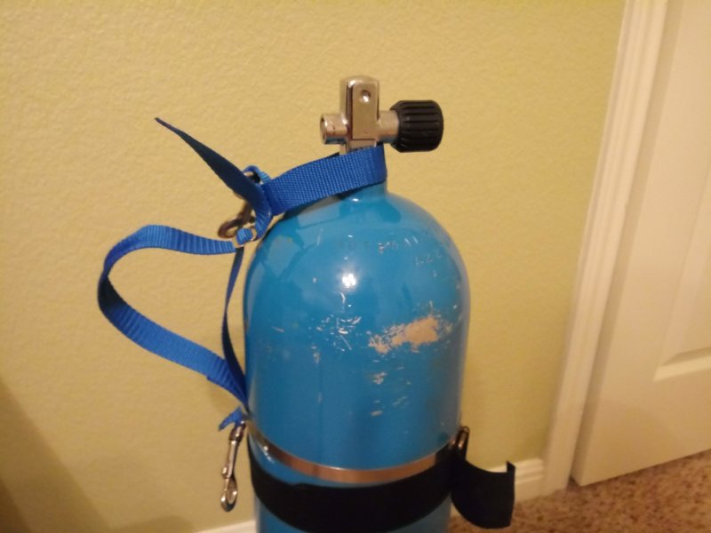 Thank you for the pictures. I like that design, it looks simple, and probably doable without a sewing machine, so long as that top-tri-glide doesn't slip. With the snaps that far down the tank, does the tank sit underneath the diver? I would have to guess it wouldn't sit in their armpits, unless they used relatively-low d-rings on their rig.