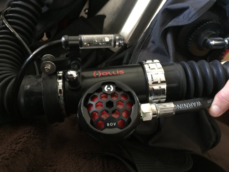 All original equipment shipped with the standard unit: Hollis backplate and harness--brand new (I used my personal Halcyon short backplate because I am only 5'4''), Hollis (Shearwater) integrated computer, heads up display, Hollis protective cover, Hollis wing