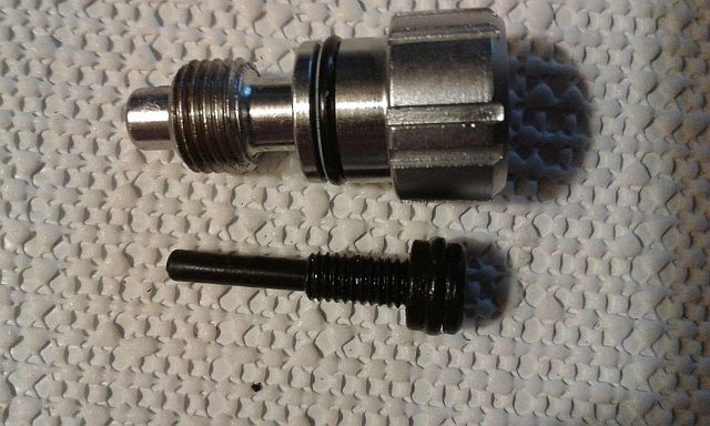 Another "issue" I had was the balance chamber, which at times, despite proper lube, was sticking on the poppet stem. I may have gone back to the original, or another one. Is it free moving on the stem? The test is to put the poppet, seat down on a smooth surface, put the balance chamber on it, and lightly push it down. When you release it, it should come back up on it's own......