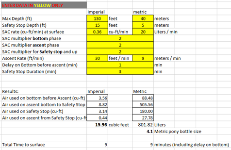 I added some text for explanation and added metric as well. I deleted the graph as I'm not sure how to address it. I'm debating on converting to pressure, but then I'd have to specify cylinder size. Maybe add a line where the user specifies a cylinder size, and then generate a graph of with the pressure values the user has to be at minimally to make it to the surface. Thoughts on that?