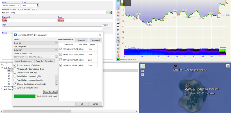 Et Voilà you now have imported dives from the Deep6 Excursion RC23