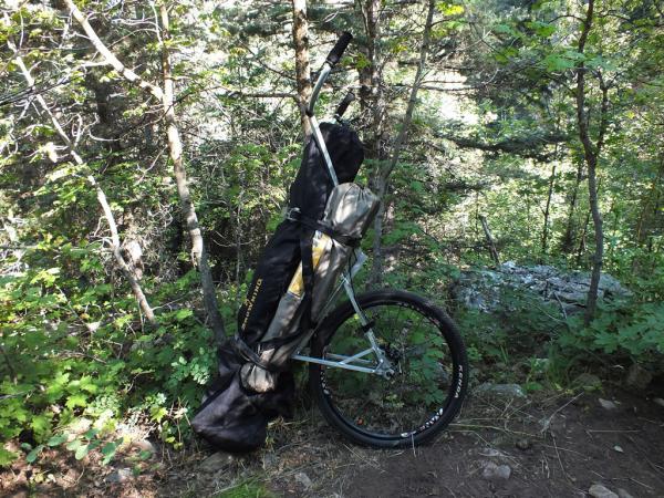 I was actually thinking for the stroller a mono-wheel would be best for when the trail gets really narrow. It does come down to a single track in some areas.
