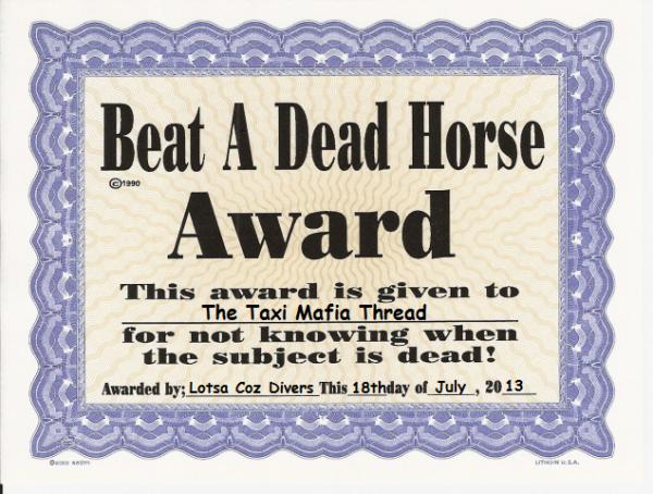 Isn't Scuba and Travel interesting and fun? We all seem to have a very strong opinion on most of the issues like splits and AI. Hell, we all even have a strong opinion on Taxi fares. Such a diverse group of people that post here. Good thing there isn't really any Scuba Police.(or is there?)