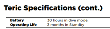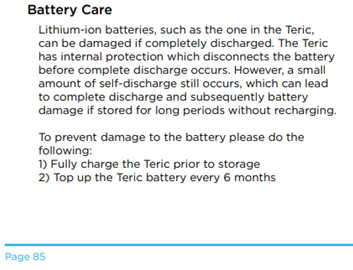 I hadn't looked at the Teric manual for some time with regard to battery life: