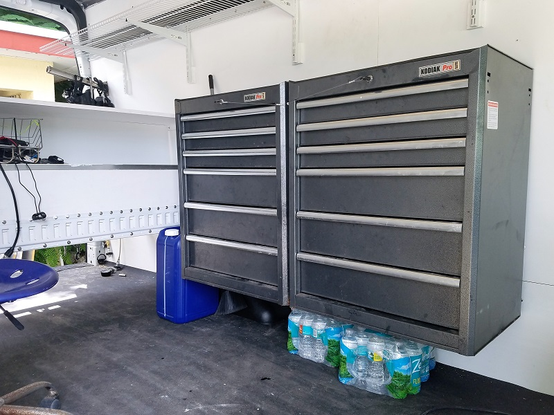 It's been cooler here in the Keys. I'm able to get more work done without overheating. Today, I installed the second Tool Box and had to straighten out one of the door slides.