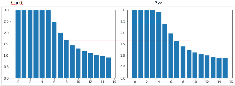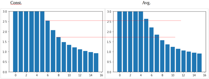 Using a 40 minute dive time, one with constant values from surface to final descent depth of 90 feet (left) and one using the average depth (which came out to 47ft) of the previous profile (right), you can see that the averaging slightly overestimates N2 loading.