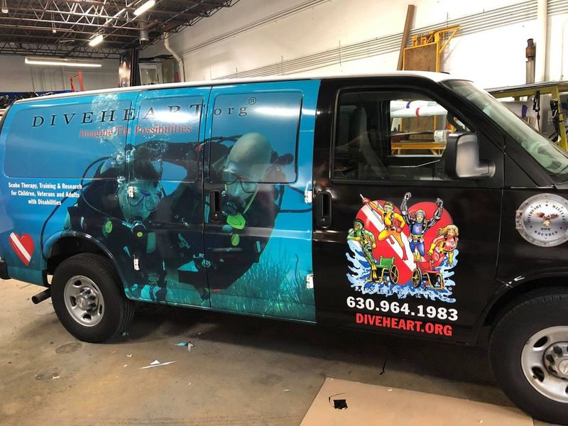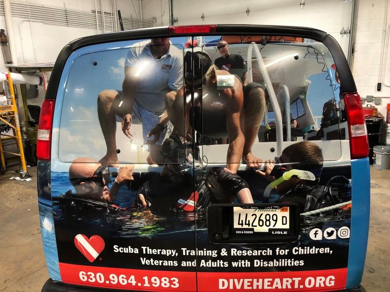She called the next day and said, "I heard that you need a van" I'm going to buy you a van. We named the van Betty and then another donor provided the amazing wrap. We're getting by with a little help from our friends....Betty thank you, and we want to thank all the friends of Diveheart who help us move forward with our mission and vision to help children, veterans and others with disabilities through zero gravity and scuba therapy.