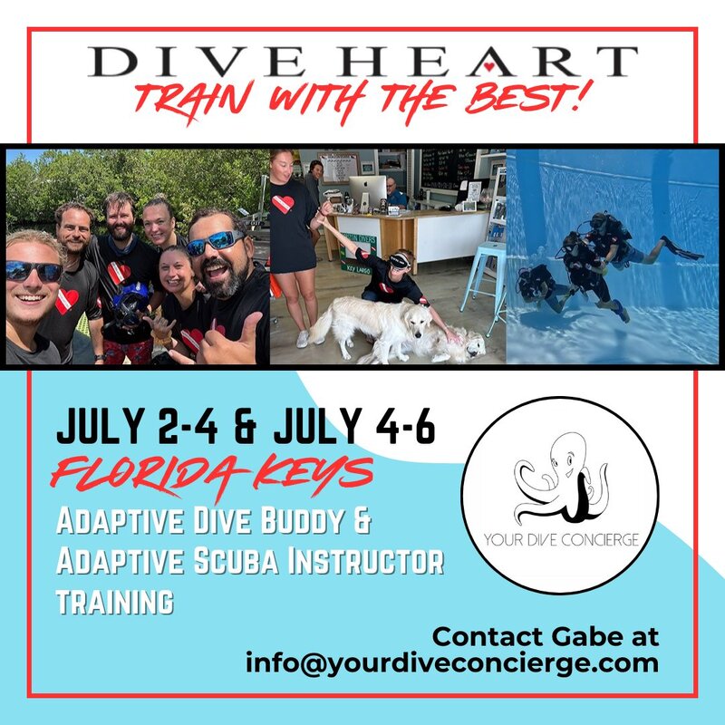 Join us in the Florida Keys July 2-4 or July 4-6 for Diveheart's Adaptive Dive Buddy and Adaptive Scuba Instructor training.