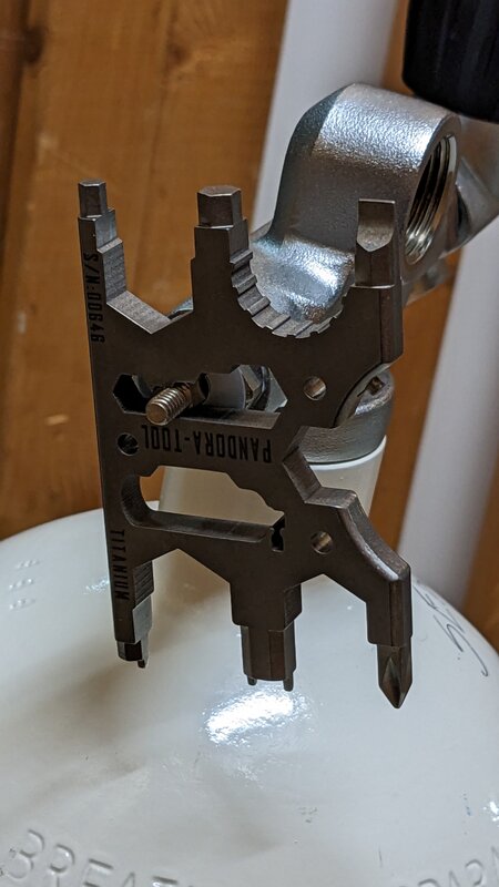 I believe that's one of the purposes for the cutout in the middle of the tool. See pic.I still wish they would implement a square drive stem wrench. More than once I have had team mates lose valve knobs on a dive. I have used this tool to remove a handwheel from one deco tank to open another deco tank. A square hole anywhere in it would be very handy.