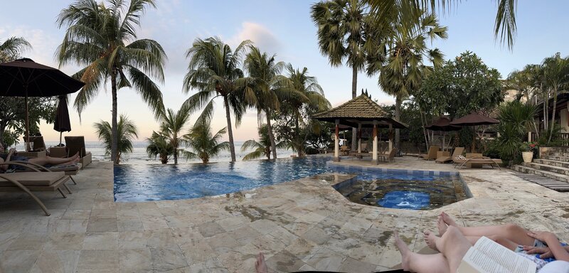 As for Puri Wirata, we loved our stay here. The resort is right on the waters edge. The snorkeling right out front was great. Rooms were big and clean, beds were comfy. Food at the restaurant was decent, we basically ate there most of the time. The pools (they have two) were beautiful.