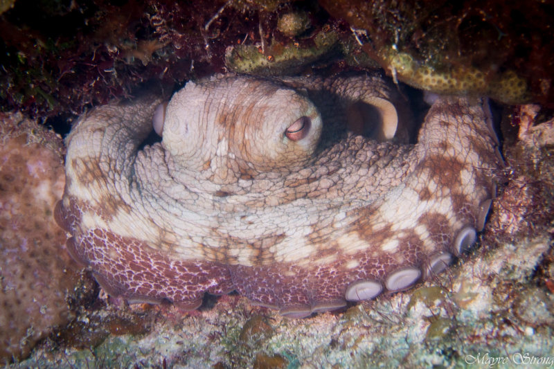 View attachment 675662 Common octopus nestled under a coral head during the day!