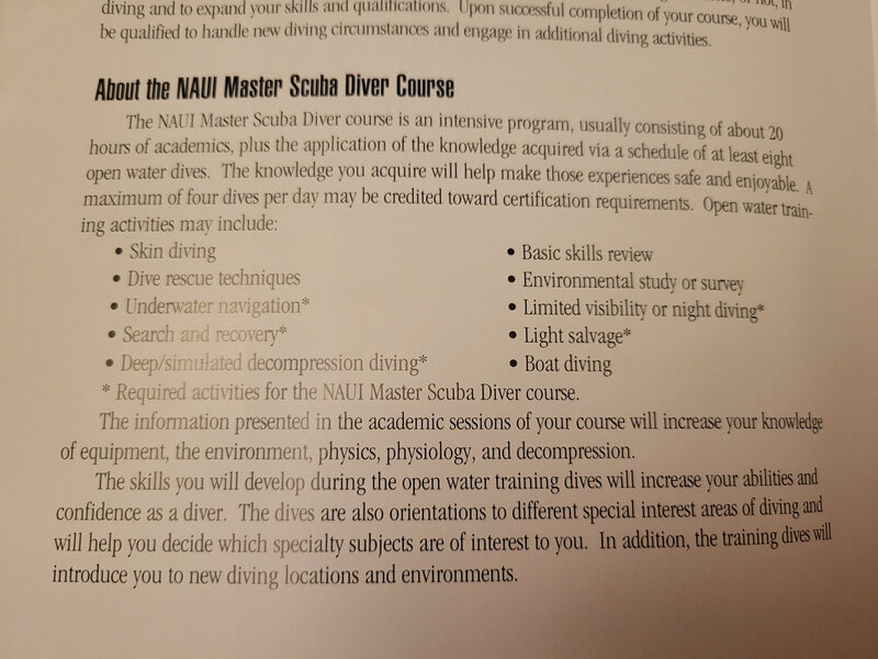 I had actually taken the same electives in Padi that were in the NAUI program so when I took NAUI I was better prepared. And even though I had the same courses, NAUI doesn't give it to you, you still have to do the coursework and dives.