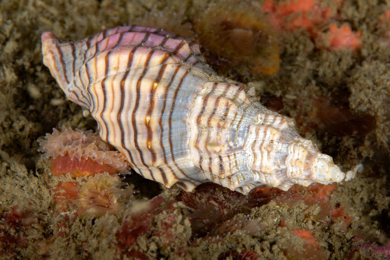 Cancellaria cooperi, Cooper's nutmeg. Paul Kanner told me these are nocturnal, and live ones are rarely seen by divers. I found this one off Palos Verdes.