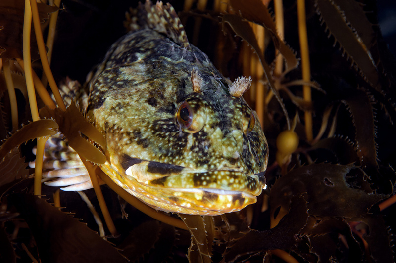 Although not an uncommon fish, I found this Scorpaenichthys marmoratus, Cabezon thirty feet off the bottom at Golf Ball Reef. I've never heard of one swimming more than a foot or two off the reef.