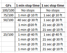 So, there is still a very short amount of stop time when the GF lo is decreased, but it appears considerably less when 1 second stops times are used rather than 1 minute stop times. How does the dive computer deal with this? What does the computer use for stop times? My only Buhlmann computer, a Nitek Q, displays stop times in whole minutes. Are these actually whole minutes or are they fractions of a minute like planning with 1 second stops? In plan mode, the Nitek Q gives the same NDL regardless of the GF lo setting, only dependent on the mix and depth and dictated by the GF hi. GF lo does not kick in unless you exceed deco and cannot directly surface under the GF hi