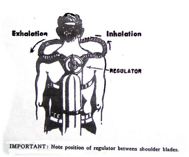 So, I have done all sorts of circus tricks in the deep end of a pool with my old DA Aquamaster. Ditch and dons, everything they teach in the “New Science of Skin and SCUBA Diving” which includes (IIRC) holding the tank straight out in front of you whilst breathing off the reg. This is actually part of the ditch and don exercise because you flip the tank on over your head. I noticed that raising the tank so the reg can is above the mouthpiece there reg begins to breathe hard. Lowering the tank so the reg can is lower than the mouthpiece and the reg breathes easier, lower it even more and the reg will freeflow and start force feeding you air. So with this test in mind, the tank is three feet away from your lungs, no where near your lungs, you’re holding it out in front of you, so how does positioning in relation to close proximity to your lungs have anything to do with ease of breathing? I don’t think it does. Ease of breathing has to do with the level of the mouthpiece in relation to the level of the reg can regardless of where the tank is sitting on your body.