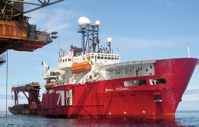 She is 94 Meters long x 18 Meters wide, supports 18 divers in sat to 370 Meters (1,214 FSW) with two bells and a ROV (Remotely Operated Vehicle). Onboard gas is measured in hundreds of thousands of cubic feet.