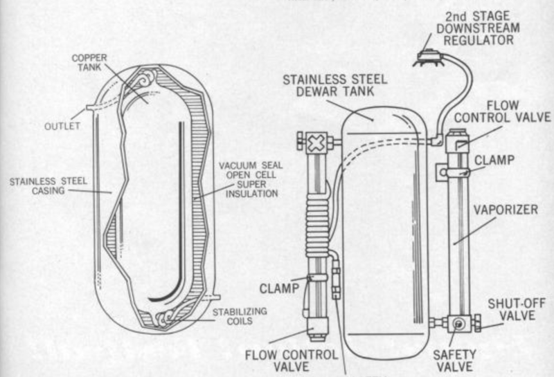 It strikes me that O2 would boil off at a different temperature than N.There were articles on Cryogenic (liquefied air) Scuba developed by Jim Woodberry in the June (page 22) & December (page 28) 1967 issues of Skin Diver Magazine. Basically, liquid air was stored in Dewar flasks and warmed into gaseous air for breathing. Skin Diver's editor, Paul Tzimoulis, reported diving a prototype to 100' and the inventor diving to 200'.