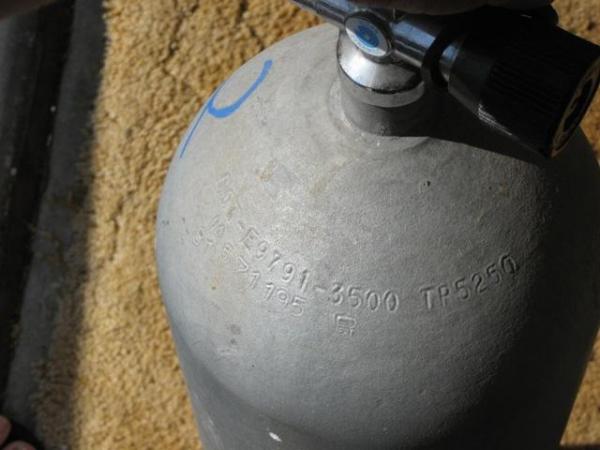 Includes tanks that are steel 3500 psi - somebody please help him find the size marking. Also includes a Black Diamond BCD - folks will want to know the size.
