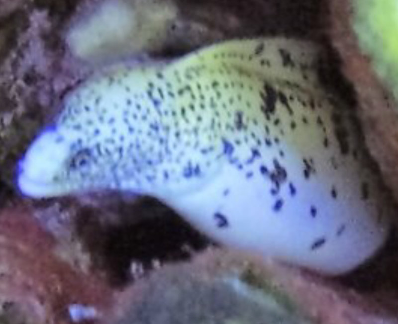 Interesting, to me it almost looks to be a hybrid cross of a Spotted Moray and a Chain Moray. The shape of the head resembles that of a Chain, where as the color looks to be that of a Spotted.