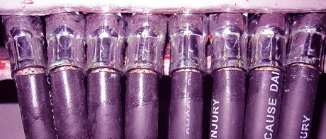 Corrosion and cracked outer sheaths on all of the hoses without hose protectors.