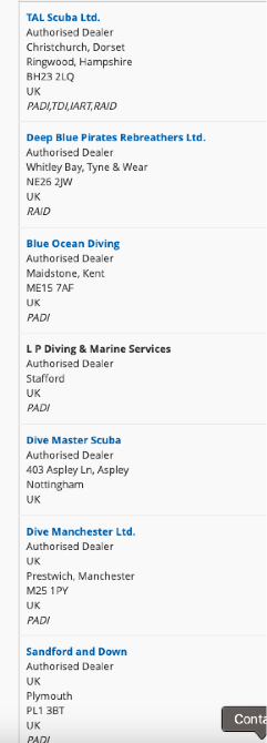 The others are suppliers that don’t allow walk ins, i.e. not dive shops.