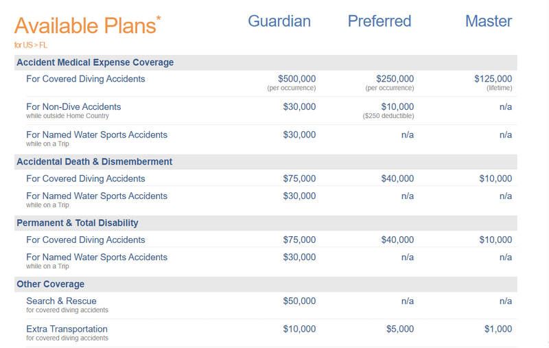 Your questions were answered - multiple times. Do you internet much? Because this was 3 clicks deep on the DAN insurance website. Compare plans > USA > FloridaR.I.F.