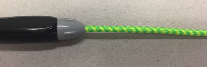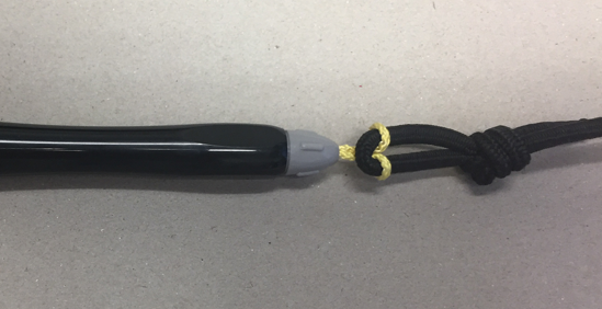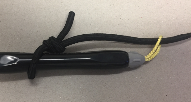 A single overhand bend will squeeze inside the grey part, and the whole thing pops back together easily: