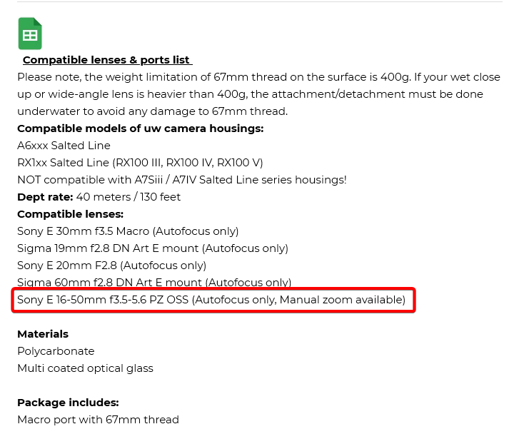 Yes i notice they mentioned it. Just need to make sure because in the excel file, they also mention 16-50mm is not compatible with "Flat Short port With 67MM Thread"