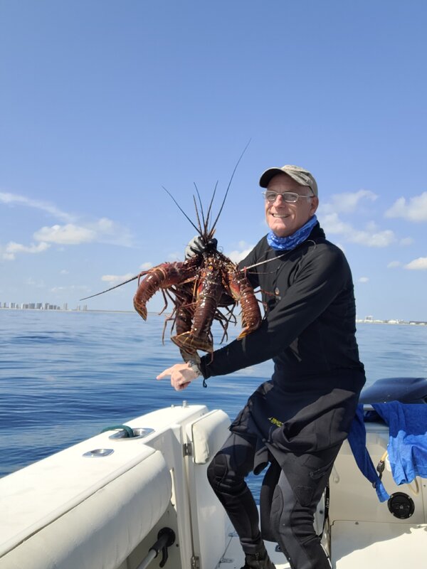 Forget the bug limit I'm holding,, Look at that mirror flat water !! Calm day,, zero foot waves topside, 2knt bottomside, 84 temps, 40ft viz,, FWC at the ramp cleaning station - said nice bugs. Less than 5% of the parking spaces were filled in the empty BHB parking lot = school's reopened.
