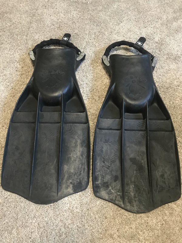 I purchased these new in 2019 for $195 (Fins $125 + spring straps $70). I used them once before I changed drysuits and had to go back to a heavier jetpro. Details here => Turtle Fins — XS Scuba - Everything For The Perfect Dive. The picture makes them look old, I guess I should clean them up (really these are virtually new).