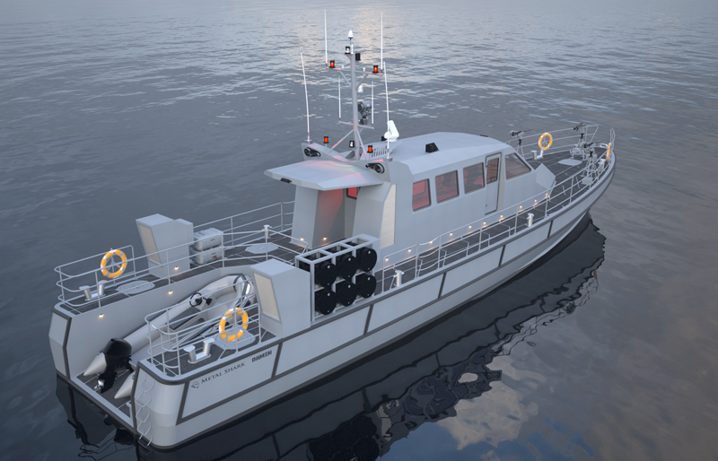 I don't need any new individual bits of dive kit like regs or DCs so after picking up a fleet of Genesis DPVs, I'd pick up a Defiant 80 (Metal Shark Boats) upfitted for extended team diving trips with an on board compressor, all breathing gases, maintenance station, DPV charging rack, etc. Metal Shark's Defiant 80 in base trim is built for sustained periods at sea for a total manifest of 10+ people. So, a crew of three (most likely) leaving the balance for divers. To keep costs down, accomodations would be intentionally austere, galley fare nutritious but simple and divers would assume some onboard crew tasks (with supervision).