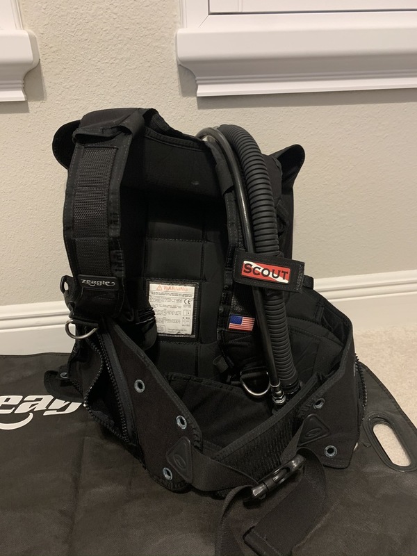 The Scout represents an exceptional value in a lightweight back inflator system. It has a low profile single bladder with an elastic retractor, and an elastic waist closure. Although lightweight Zeagle has not skimped on durability, manufactured from 1000-denier nylon making this a BC you will get years of service from. Two zippered utility pockets for gloves, lights and other accessories, adjustable torso waist and sternum straps, for a more comfortable and custom like fit. All straps are equipped with squeeze-style" side release buckles for easy donning and doffing.