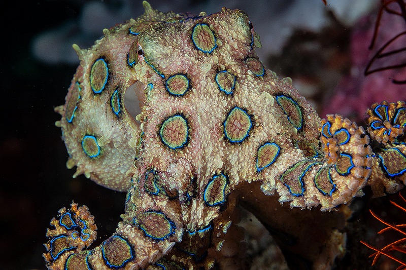 The beauty of the dive comes from the variety of life you can find and the diversity of photo ops : wide angle on the amazing corals, sweetlip schools, macro for the abundance of nudibranchs, sometimes yes, a blue ring octopus comes on a shallower reef and performs its psychedelic antics.